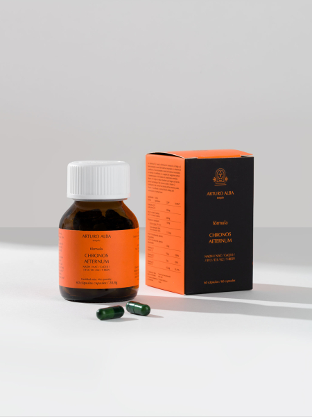 Complemento alimenticio formulado para apoyar un envejecimiento saludable, optimizar la producción de energía, proteger frente al estrés oxidativo y reforzar la salud cardiovascular, ósea e inmunológica.