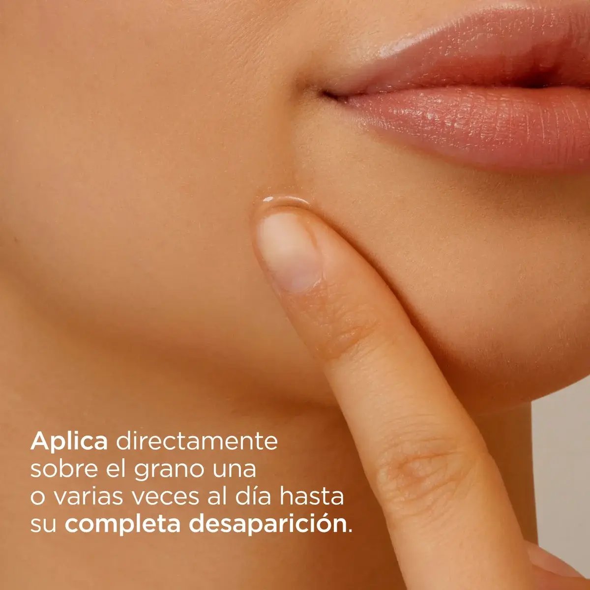Gel de tratamiento localizado que ayuda a secar y reducir rápidamente granos puntuales, mejorando el aspecto de las imperfecciones sin resecar en exceso la zona.