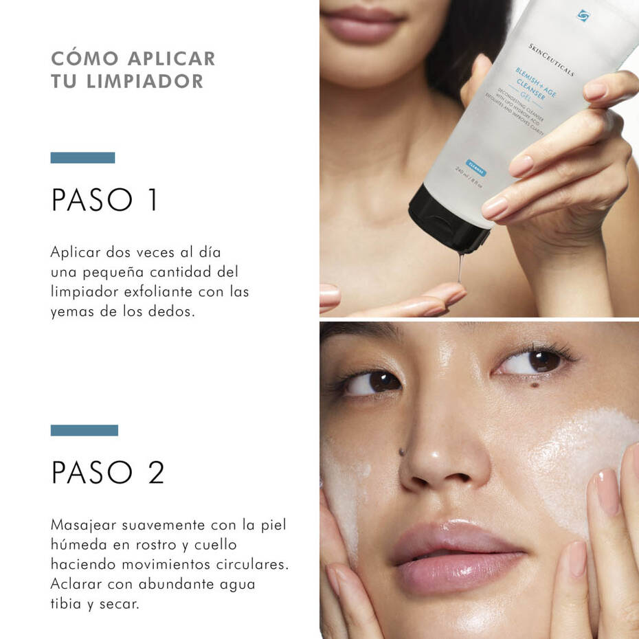 Aplicar una pequeña cantidad sobre la piel húmeda del rostro y cuello, masajear suavemente y aclarar con abundante agua. Usar una o dos veces al día según tolerancia.